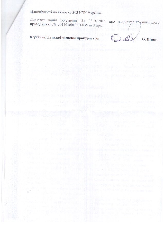 З таким рішенням погодилось керівництво прокуратури Луцька та реформованої Луцької місцевої прокуратури. На думку сторони потерпілого, з цього приводу упереджено підійшов і перший заступник прокурора Волинської області І.Мукан.