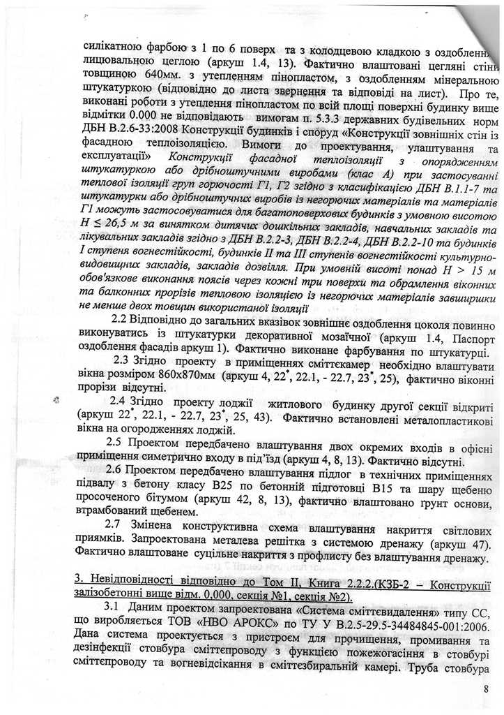 З його слів, варто зауважити, що перевірку не проводили, попри повідомлення про обстеження експертами фасаду вищевказаного будинку на висоті між 3 та 4, 6 та 7 поверхами і не зважаючи на те. Так, свого часу, експерти виявили факт відсутності негорючих поясів через кожні три поверхи та відсутність обрамлення віконних та балконних прорізів тепловою ізоляцією із негорючих матеріалів, що є порушенням п. 5.3 ДБН В26-33.