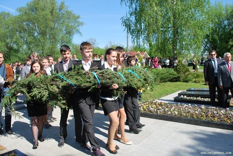 Міський голова Луцька Микола Романюк наголосив, що сьогодні ми повинні вшанувати сотні тисяч людей, які віддали своє життя за те, що ми маємо можливість жити на цій землі і розбудовувати нашу державу. Молодому поколінню мер побажав примножувати та цінувати здобутки попередніх поколінь та не забувати якою ціною нам дався сьогоднішній добробут.