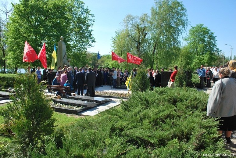 Декілька сотень лучан та мешканців села Липини поклали квіти та вшанували пам'ять воїнів-визволителів біля Братської могили у мікрорайоні Теремно.
