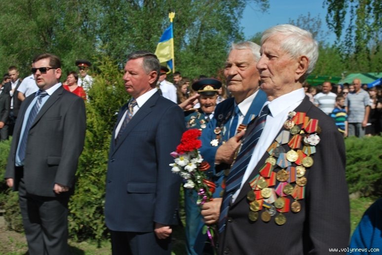 Участь у святковому мітингу з нагоди Дня Перемоги взяли Луцький міський голова Микола Романюк та його радник Борис Сорока. Урочистий мітинг відбувся 8 травня.