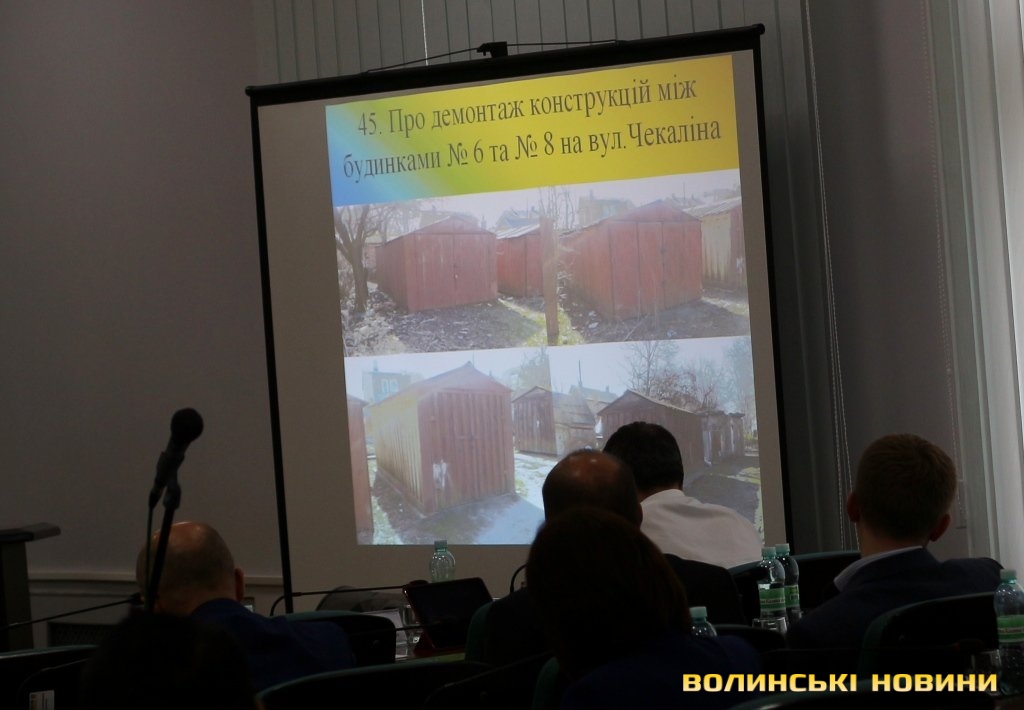 На вулиці Гнідавській, 38, демонтують дерев’яний сарай, на вулиці Кравчука, 28 – незаконно встановлений кіоск, на вулиці Франка, 47 – гараж, встановлений без документів на прилеглій до житлових будинків території (таких покинутих об’єктів у місті, зі слів головної муніципалки Луцька, є чимало).