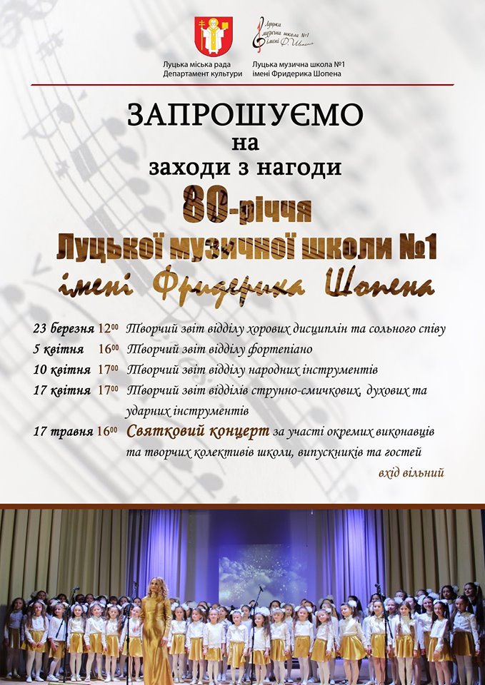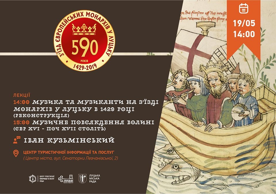 «Lutsk night cinema» у Волинському краєзнавчому музеї | 16 травняГоцалки в пивному клубі «Оболонь» | 17 травняPERSONAL BRANDING у центрі Passage Interdit | 17 травняЛекція «Як інвестувати в мистецтво» в Академії сучасного мистецтва | 17 травняКороль та Королева Луцького НТУ 2019 у Волинському академічному обласному музично-драматичному театрі імені Тараса Шевченка | 17 травняРетро-фольк квартет «Стара Шухляда» у пивному клубі «Майдан» | 17 травняВистава «Про що мріють зірки» у Волинському академічному обласному театрі ляльок | 17, 19 травняДень Європи у Луцьку | 18 травняНіч у музеї, чи Нічний катарсис у Музеї сучасного українського мистецтва Корсаків | 18 травня25 день народження «Кораблика» в пивному клубі «Оболонь» | 18 травняМіжнародна акція «Ніч музеїв» у Волинському краєзнавчому музеї | 18 травняСвятковий концерт з нагоди 80-річчя школи № 1 імені Фридерика Шопена | 18 травняФестиваль безпритульних собак #мокріносики в РЦ «Промінь» | 19 травняРитмотека в пивному клубі «Оболонь» | 19 травняЛекція «Музика та музиканти на З'їзді монархів у Луцьку» в Центрі туристичної інформації та послуг | 19 травня«Дизель-шоу» у Волинському академічному обласному музично-драматичному театрі імені Тараса Шевченка | 20 травняВистава «Бджілка» у Волинському академічному обласному музично-драматичному театрі імені Тараса Шевченка | 22 травняВистава «Шельменко-денщик» у Волинському академічному обласному музично-драматичному театрі імені Тараса Шевченка | 23 травня