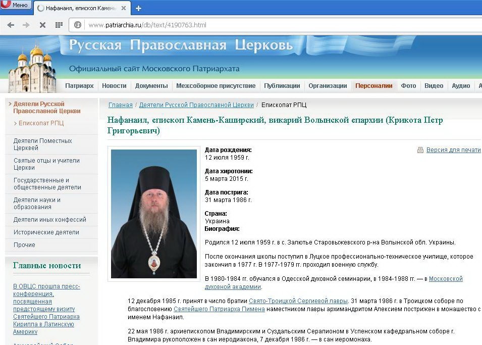 Нещодавно призначеного вікарія Волинської єпархії УПЦ (МП) єпископа Камінь-Каширського Нафанаїла (Крикоту) офіційно представили в Луцьку. Кадрове нововведення прокоментував у «Фейсбуці» протоієрей Віктор Пушко, головний редактор радіостудії «Благо» Волинської єпархії Київського Патріархату, - повідомляє прес-служба волинської єпархії.