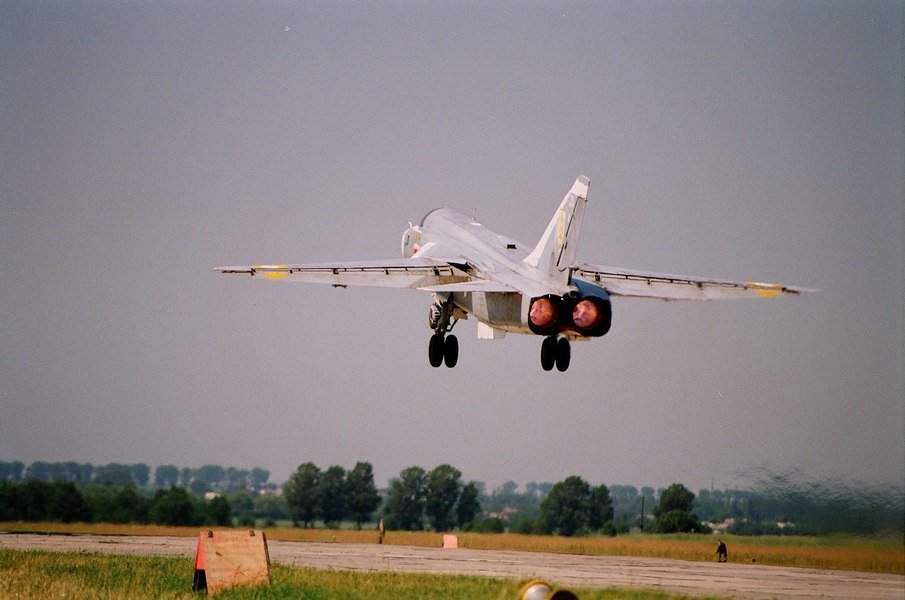 Зліт фронтового бомбардувальника Су 24 з Луцького військового аеродрому 1998 рік