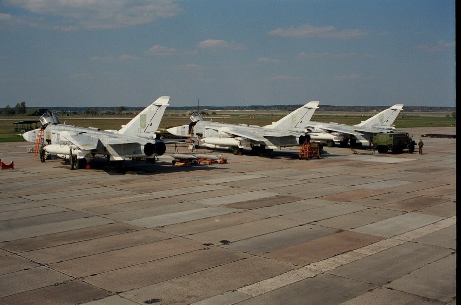 Фронтові бомбардувальники Су 24 на Луцькому військовому аеродромі 1998 рік
