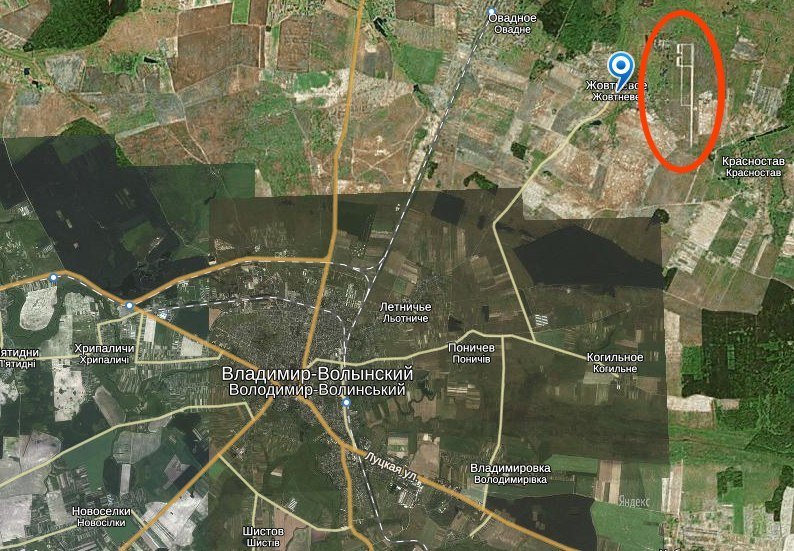 Військовий аеродром Жовтневе Володимир Волинського району на карті