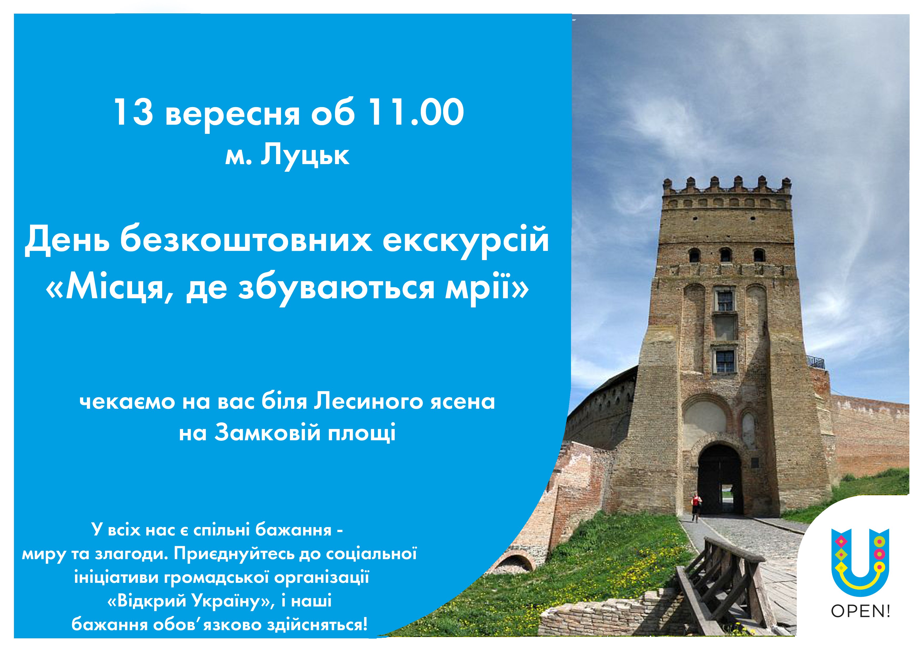 Безкоштовна екскурсія в рамках соціального проекту «День безкоштовних екскурсій» відбудеться 13 вересня об 11 годині в рамках соціального проекту «День безкоштовних екскурсій».