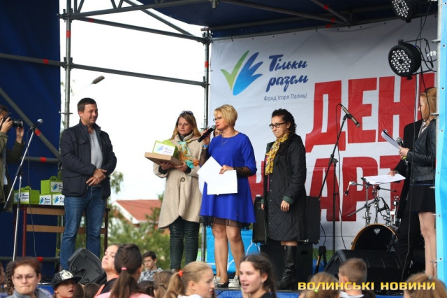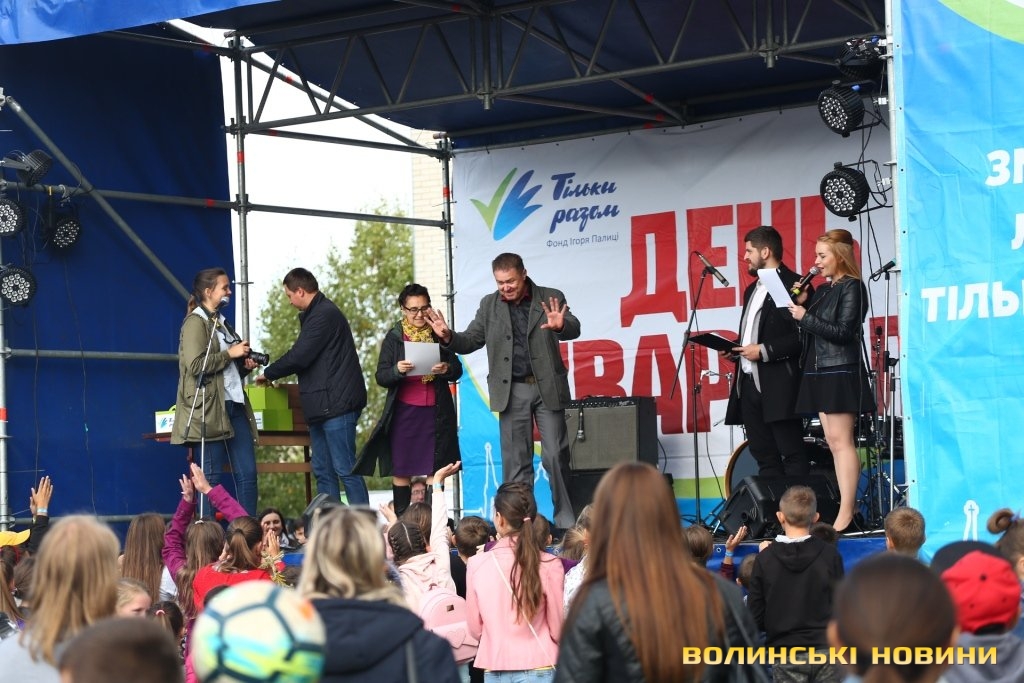 До святкового дійства, яке 23 вересня організував на території школи №13 Фонд Ігоря Палиці, долучилися ГО «Волинський актив молоді», депутат Волинської обласної ради Сергій Леонтьєв, депутат Луцької міської ради Сергій Шкода, депутат Луцької міської ради, засновник волонтерського центру «Серце Патріота» Сергій Балицький, гіпермаркет будівельних матеріалів «Нова Лінія» та магазин комп’ютерної техніки Iсitу.