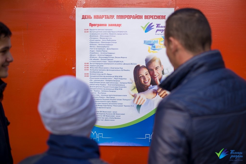 Зауважимо, «День кварталу» - новий проект Фонду Ігоря Палиці «Тільки разом». Вперше таке свято, яке зібрало близько двох тисяч гостей, організували для жителів 40-кварталу 17 вересня. Вже тоді у Фонді пообіцяли, що скоро подібні свята організують і у інших мікрорайонах Луцька.
