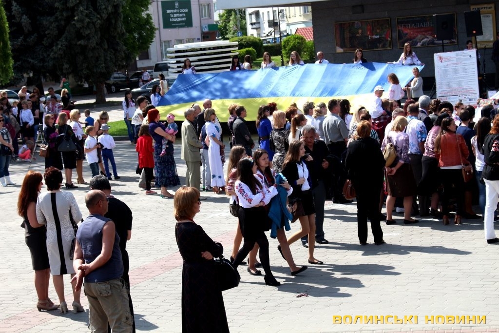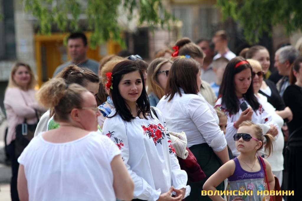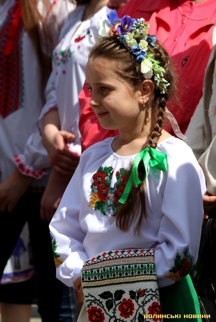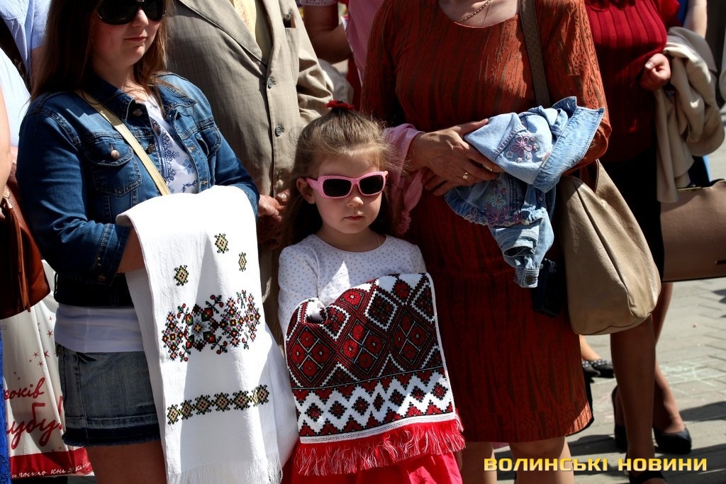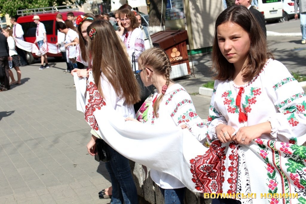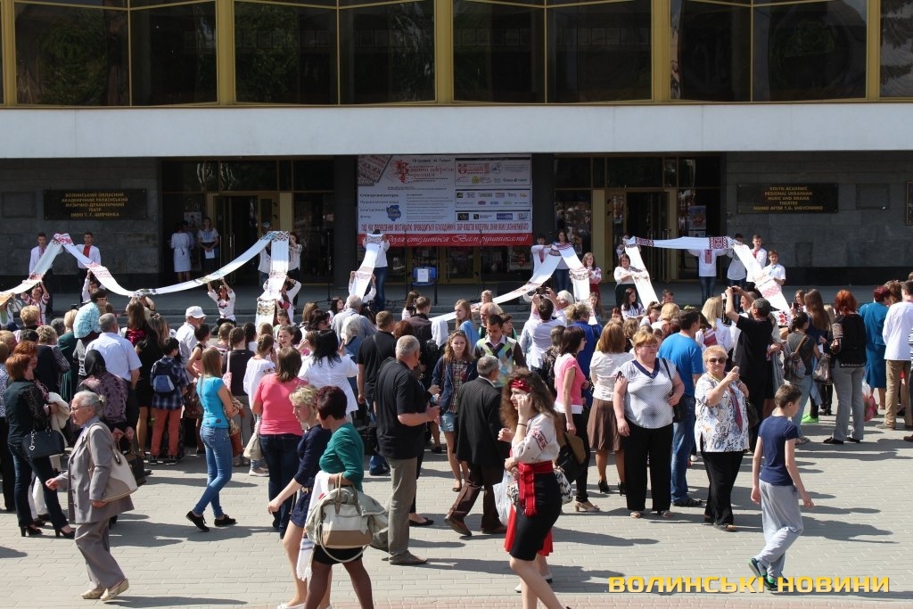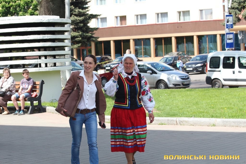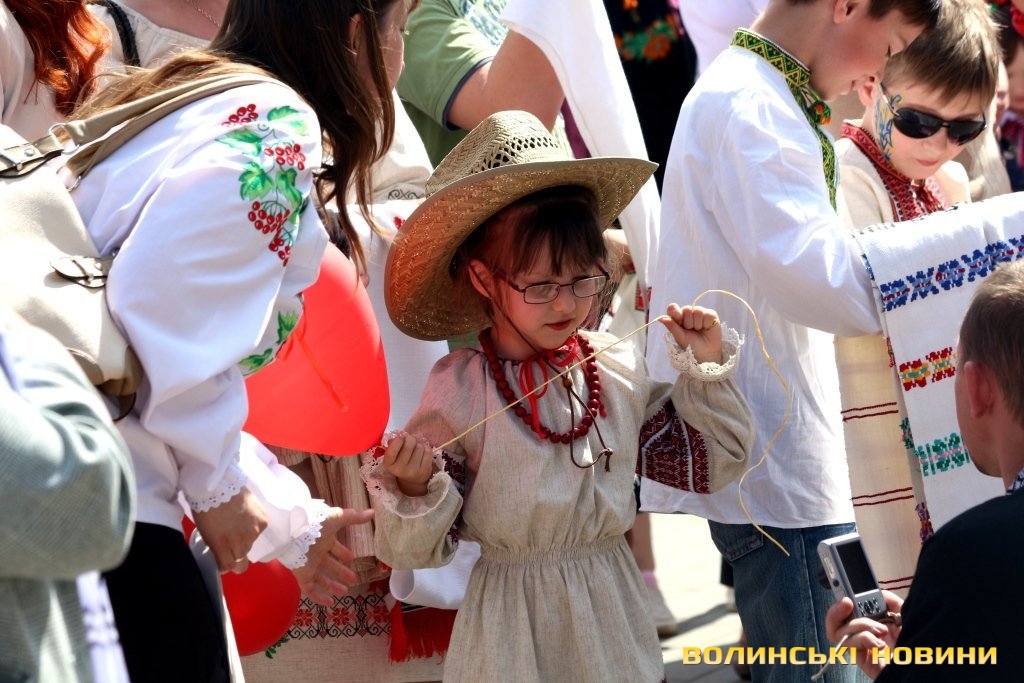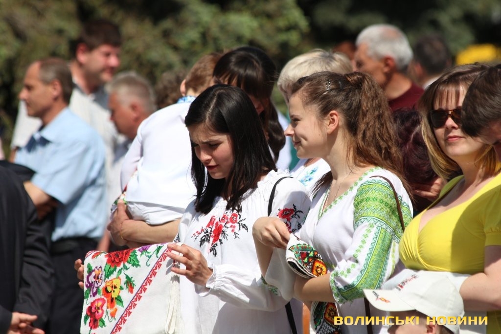На залитому сонячним світлом Театральному майдані у Луцьку 10 травня зібралося чимало лучан, які прийшли, аби відзначити День матері. Приходили цілими родинами, адже розваг для малечі не бракувало: перед будівлею облмуздрамтеатру пропонували взяти участь у конкурсі малюнку на асфальті (під гаслом «Малюю рушничок мамі»), поряд можна було придбати солодощі, до того ж, відбувався конкурс на кращі весільні короваї. Традиційно відбувся аукціон вишитих рушників.Увесь центр міста ряснів лучанами у вишиванках та із вишитими рушниками – у рамках фестивалю «Вишиті обереги єднання» лучани цього разу утворили спільний вишитий рушник, що простягнувся на сотні метрів Театральним майданом та вулицею Лесі Українки.