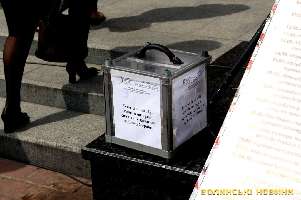 Збір коштів для матерів, чиї сини загинули на війні, тривав на Театральному майдані, а власне матерів загиблих лучан вшанували під час фестивалю, вручивши квіти та грошову допомогу. Відтак, попри теплу сонячну погоду, свято матерів цьогоріч запам’ятається лучанам не лише розвагами, а й гіркотою пам’яті про нелегку місію матері, яка виховує сина-захисника України.