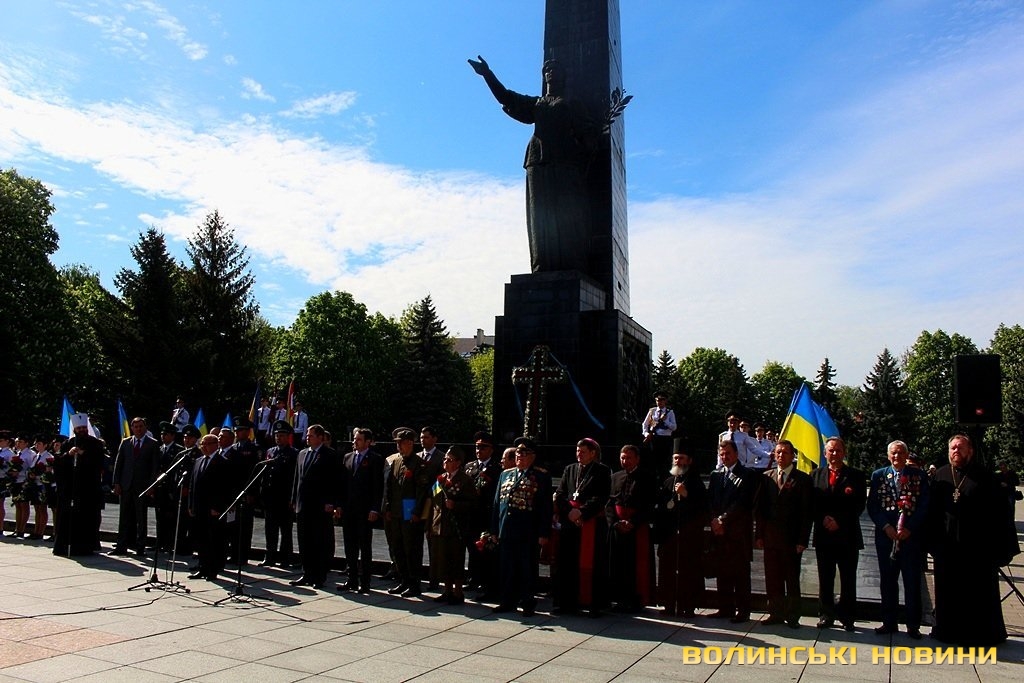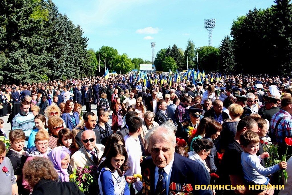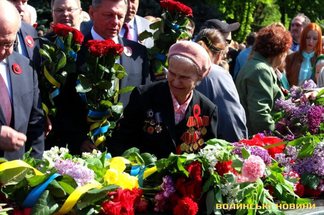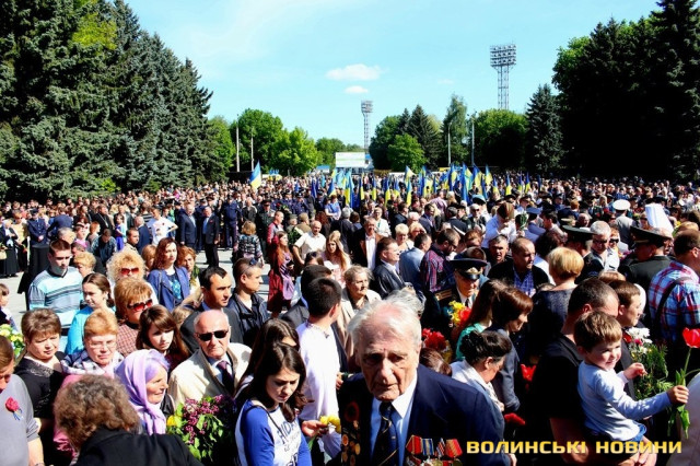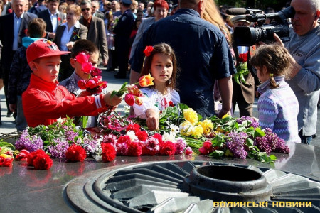 Так, вшанування пам'яті жертв Другої світової війни та покладання квітів до Центрального монументу, що на меморіальному комплексі «Вічна Слава», відбулося сьогодні, 9 травня, о 10 годині у Луцьку.Урочистий захід відкрив Луцький міський голова Микола Романюк, після чого зазвучав Гімн України.