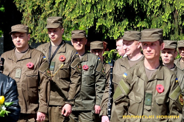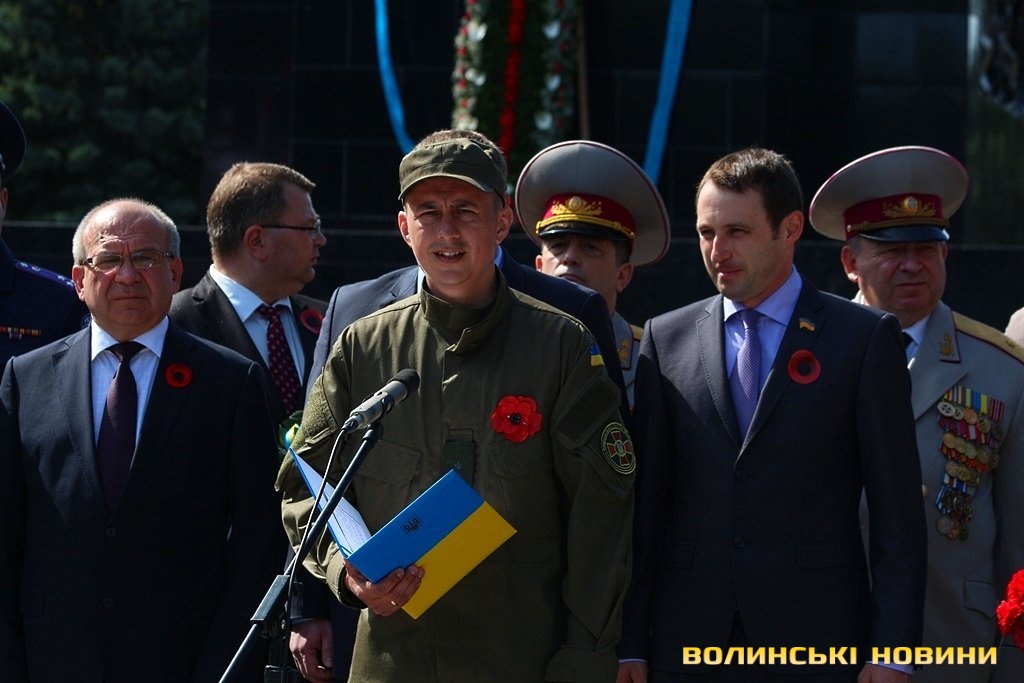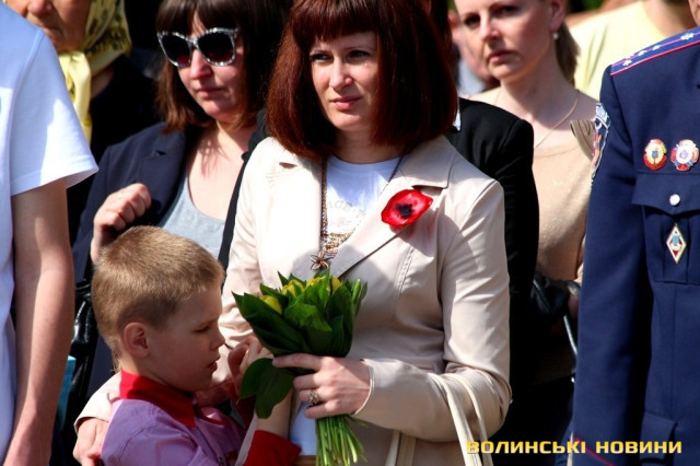 «Сьогодні День Подяки тим людям, які боролися з фашизмом, не шкодуючи власного життя заради щастя майбутніх поколінь. Вони назавжди залишаться в нашій пам’яті і наших серцях. Ми повинні пам’ятати їх подвиг та докласти максимум зусиль для того, щоб на теренах нашої України панував мир. Хочу сказати слова подяки тим ветеранам, які знаходяться тут, разом з нами, побажати їм міцного здоров’я, щастя, оптимізму та активного довголіття. Закликаю молодь завжди виявляти шану і повагу до ветеранів, до покоління, яке пройшло важке випробування. Прислухатися до порад тих, хто пройшов сувору школу війни. Від свого покоління хочу додати: шановні ветерани, ви були, є і будете прикладом для нас. Нас виховували на ваших подвигах, тож продовжимо ваші традиції. Ворога ми переможемо. Вічна пам'ять Героям та Слава Україні», - сказав воїн.Варто додати, що поряд із червоними маками – символами Дня пам’яті та примирення, на луцькому меморіалі «розквітли» й георгіївські стрічки.Окрім цього, увагу перхожих до себе привертав чоловік, на грудях якого красувався напис: «Спасибо отцу и дедам за Великую Победу».«Ви навіщо благородну гвоздику та троянду на бур’ян проміняли? Мак – це символ наркоманів. Відповідно, ви піддались стадному інстинкту, якщо прикрасили ним свій одяг», - наполегливо звернувся він до журналіста.