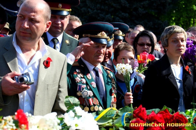 Однак, чомусь у такий урочистий та, водночас, сумний день, розпочинати полеміку із чоловіком поважного віку зовсім не хотілося…Цьогоріч День Перемоги зібрав надзвичайно велику кількість лучанПоважні ветераниКолектив Фонду Ігоря Палиці «Новий Луцьк»Голова спілки ветеранів Афганістану Григорій ПавловичГолова інформаційно-просвітницького відділу УПЦ протоієрей Валентин Марчук та секретар Волинської єпархії УПЦ, протоієрея Миколай БондарукМитрополит Луцький і Волинський МихаїлДепутат Луцької міської ради, заступник Голови правління Фонду Ігоря Палиці «Новий Луцьк» Ірина КонстанкевичНачальник УМВС у Волинській області Петро ШпигаГолова правління Фонду Ігоря Палиці «Новий Луцьк» Олександр Товстенюк (ліворуч) та член депутатської групи «Новий Луцьк» Ігор Поліщук Керівник громадської приймальні Фонду Ігоря Палиці «Новий Луцьк» Світлана Синюк та секретар-референт Фонду Олеся Коцовськаі