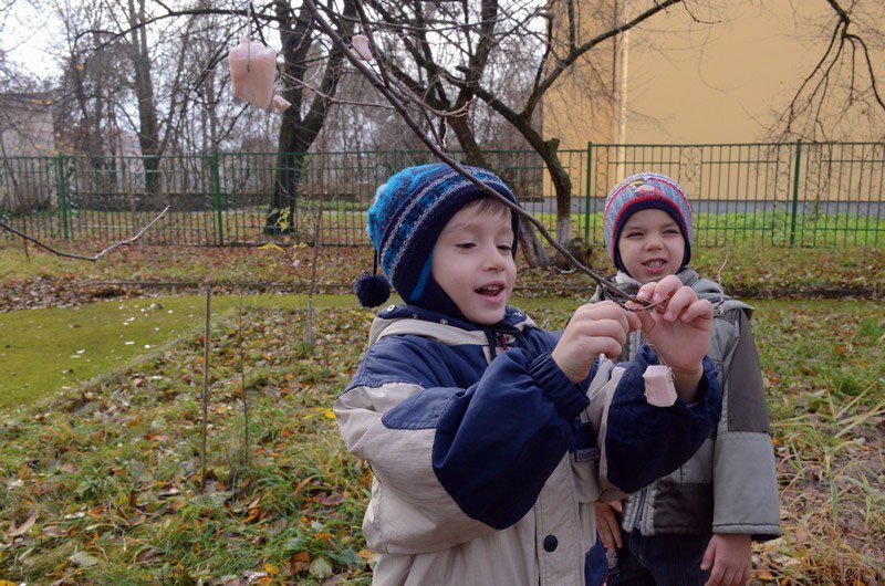 Дещо запізно для синиць вони зявляються ще на початку осені але хай діток порадують хоч цим