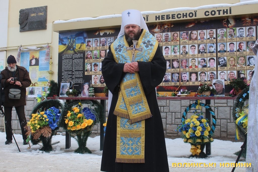 Після того, як біля пам'ятногро фотостенду «Героям Небесної сотні» пролунала тужлива заупокійна пісня-реквієм «Вічная пам’ять», промову до вірян виголосив Митрополит Луцький та Волинський Михаїл: