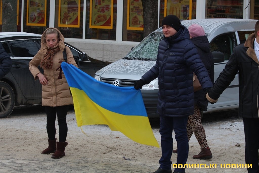«На жаль, так сталося в історії, що певні території України відійшли, але ми повинні розуміти й пам’ятати, що уроки єдності для українців завжди повинні бути. Тільки тоді ми пам’ятатимемо, що ми сильні й успішні, ми будемо тією нацією, яка зможе бути провідником і в Європі, і в усьому світі. Але для цього ми маємо прийти до спільного висновку: Україна повинна бути процвітаючи та єдина. Історія не повинна повторюватись, не потрібне нам роз’єднання, а лише єдність серед українців», – резюмував «укропівець».Після урочистостей волиняни колективно виконали Держаний Гімн України.