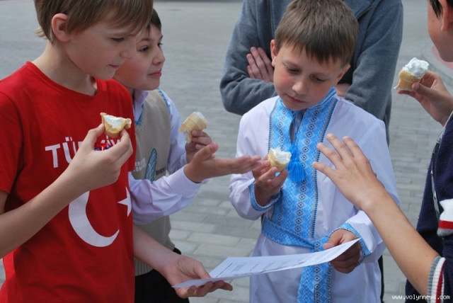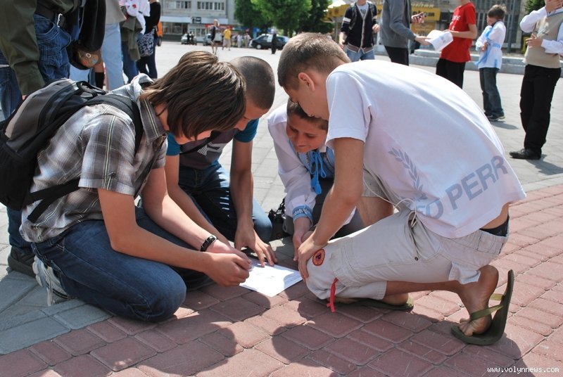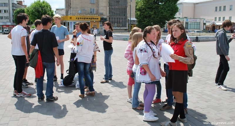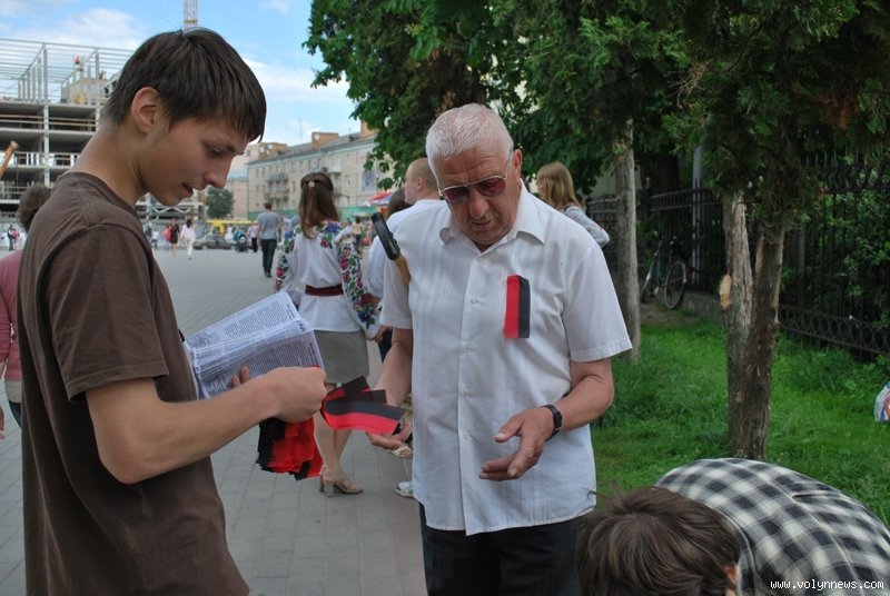 На Театральному майдані Луцька 27 травня День Героїв відзначали патріотичним квестом, виставкою про історію УПА на Волині та роздаванням червоно-чорних стрічок.