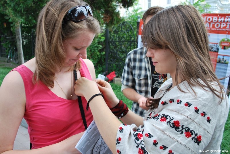 А всім охочим волонтери чіпляли червоно-чорні стрічки.