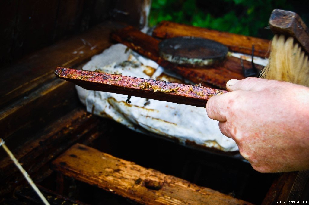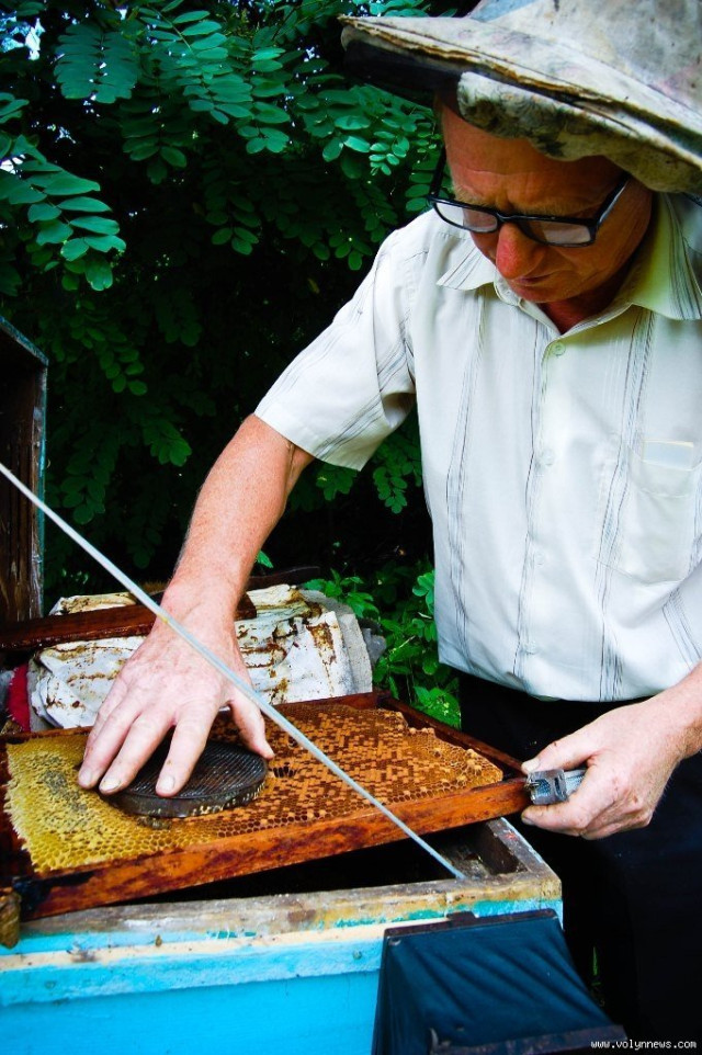Закінчивши оглядати вулики, Іван Анастасійович усе переконував, що кращого меду ніж наш волинський немає. Так, на відміну від східного, мед з Волині – з різних трав і квітів.