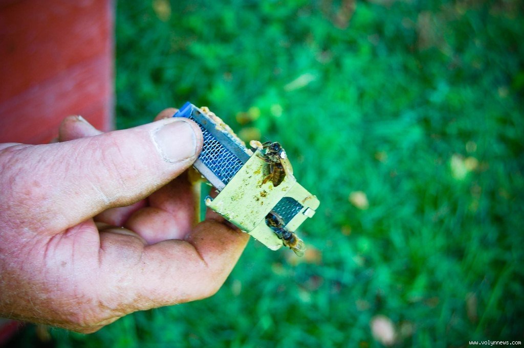 Сьогодні на пасіці Іван Анастасійович займався «підставленням» маток. «Це матки в клєточках. Тут є одна бджілка мічена. То є матка. Вона є хазяйка сім’ї», ‒ показує чоловік.