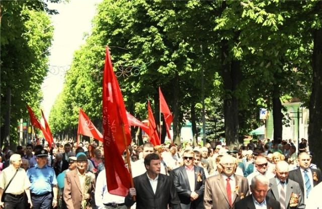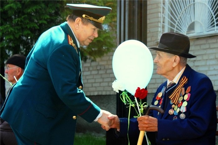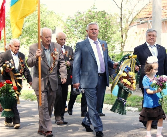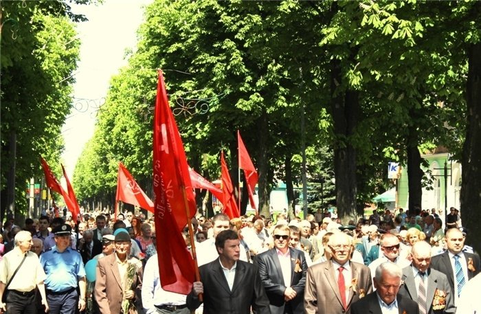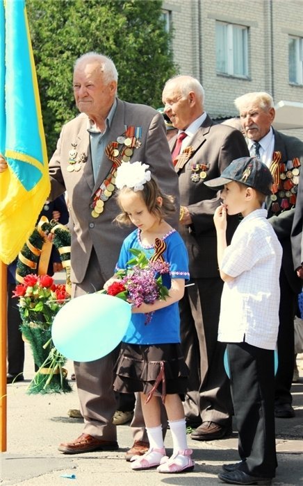 Ветеранів прийшли привітати рідні та близькі, а також місцеві чиновники та політики. Були розставлені намети «Партії регіонів», які роздавали усім присутнім повітряні кульки з логотипом цієї політсили, а також георгіївські стрічки. Були присутні як депутати різних груп і сил міської ради, так і обласної.