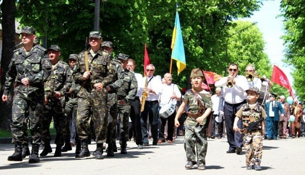 Після врочистого покладання квітів біля пам’ятника воїна-захисника та кількох автоматних залпів процесія рушила стометрівкою до парку відпочинку. Особливо відзначилися під час урочистої ходи двійко одягнених у камуфляжні форми маленьких хлопчиків, які крокували на чолі процесії поруч з дорослими бійцями української армії. Велелюдну процесію знімали на мобільні телефони звичайні перехожі, котрі зупинялись обабіч дороги. Була музика і шашлики.