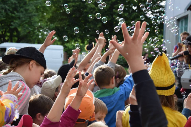 Серед розваг, які влаштували для дітей – забави з аніматорами студії "Карамболь", ігри з перетягування канату, шоу мильних бульбашок і солодкий стіл.