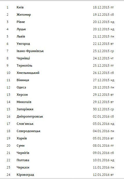 З 18 грудня до 19 січня український Дід Мороз мандруватиме Україною, завітавши до 24-ох поштамтів різних міст. Луцьк Дід Мороз відвідає 20 грудня.