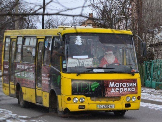 Дід Мороз – за кермом луцької маршрутки. ФОТОФАКТ