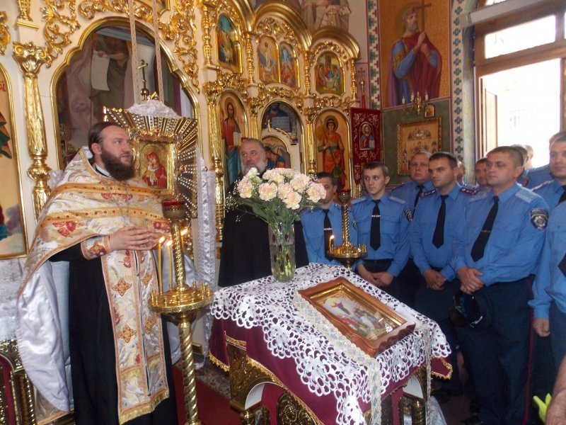 Насамперед протоієрей Олександр Мазурак провів богослужіння у храмі Святого Великомученика Георгія Побідоносця, котрий розташований на території УМВСУ в області. Святий отець побажав здоров’я міліціонерам та їхнім родинам, аби Бог оберігав їх у нелегкій роботі.
