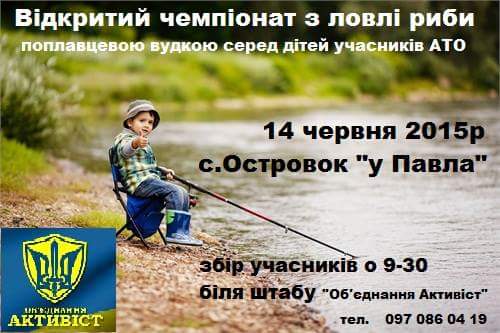 Відтак, запрошуються діти учасників АТО віком до 15 років на "Відкритий чемпіонат з ловлі риби поплавцевою вудкою серед дітей учасників АТО".