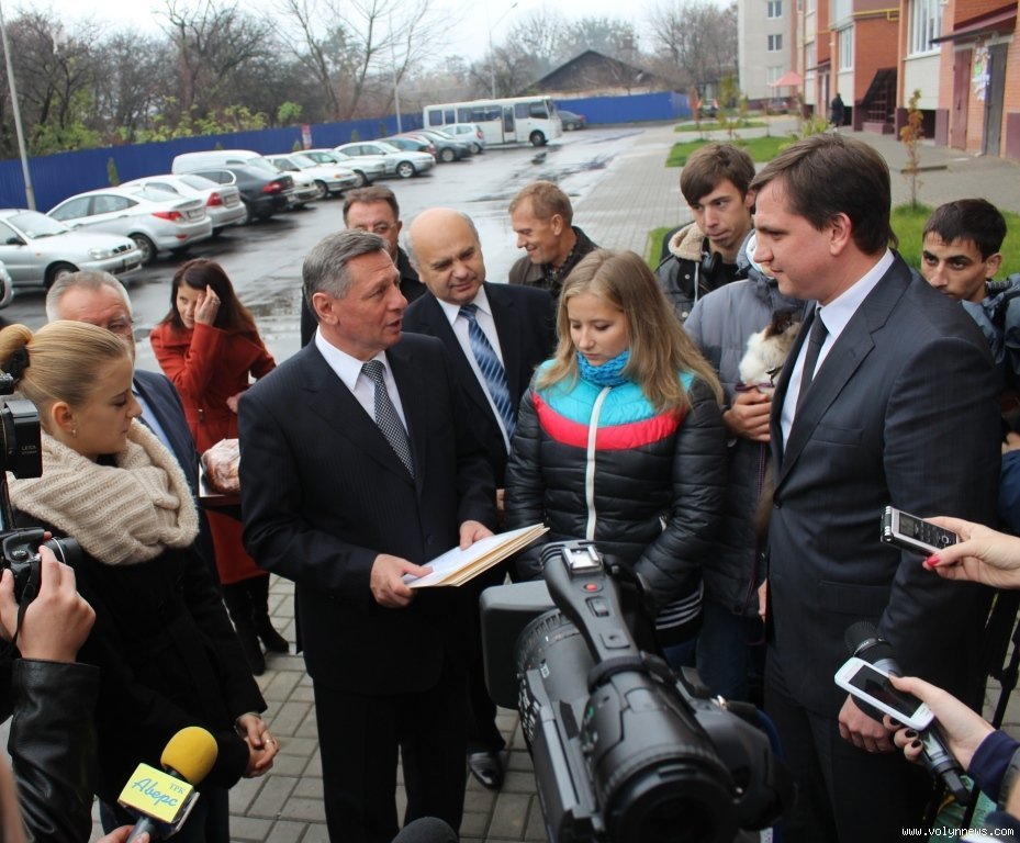Під час свого візиту у Луцьк 10 листопада, Юрій Павленко спільно з представниками місцевої влади вручив ключі від соціального житла у новобудові на вулиці Арцеулова Анастасії Устіновій, Олені Осійчук та їхньому брату Назару Устінову.