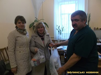 На решту грошей, виручених дітьми ( а це ще дві тисячі гривень), закупили найбіль вживані медичні препарати, які вчителі Тетяна Ігнатюк та Людмила Сидорук передали начальнику госпіталю Олександру Хоменку.