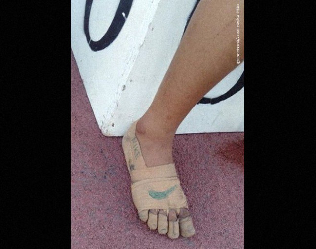 Дівчинка з Філіппін виграла три золоті медалі під час змагань з бігу, в яких вона взяла участь, взутою в саморобні кросівки з пластиру.