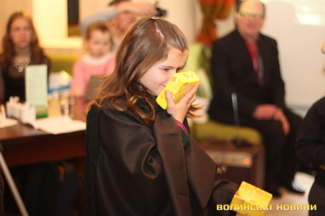 «Одного погожого літнього дня якось я зустрівся з Олександром Степановичем. Розповів йому, що завжди мріяв стати професійним фотографом. Розпитав, як там і що. І ось уже понад три місяці я є учнем фотостудії», - з іскоркою в очах каже хлопець. Він наголосив, що лише завдяки навчанні у фото- та відеостудії «Позитивчик» його мрія потрохи стає реальністю.Опісля усі гості щиро та з насолодою переглянули гумористичні міні-вистави «Ворона-суддя» та «Скупа господиня» від театру-студії «Забавляночка» під керівництвом Оксани Баховської.«Звертаючись до вашого фонду, ми дякуємо за значний вклад в розвиток нашого міста і особливу допомогу громадським організаціям у оздоровленні інвалідів дитинства, сиріт. Нема такого куточка в місті, де не було видно вашу допомогу, доброту та тепло ваших сердець», - насамкінець звернувся очільник «Зірки Надії» до благодійників.Вероніка Сурова - маленька переселенка із КерчіДанило Мельников, фотограф-початківець із Донецька Керівник театру-студії «Забавляночка» Оксана БаховськаВикладач арт-студії «Декор» Марія ГонтаЗаступник голови Фонду Ігоря Палиці «Новий Луцьк» Ірина Констанкевич