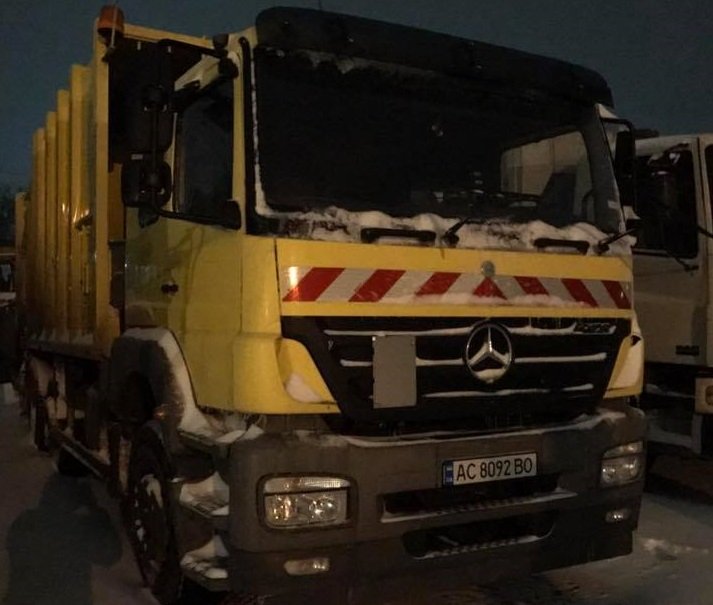У своєму Фейсбуці Ігор Поліщук написав, що це два найбільші в Луцьку 25-кубові сміттєвози Mercedes Axor.
