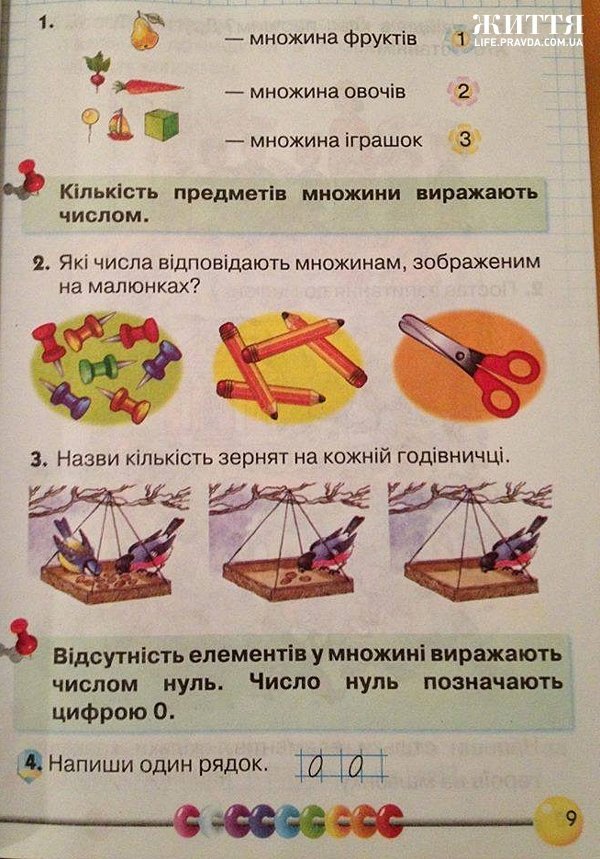 Як переконалась Українська правда. Життя, навчальний матеріал у першому класі поданий незрозуміло для учнів. Наприклад, під час першого тижня навчання діти мали зрозуміти, що 0 – це відсутність елементів у множині.