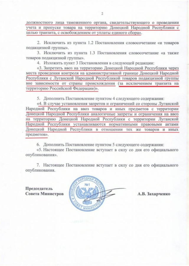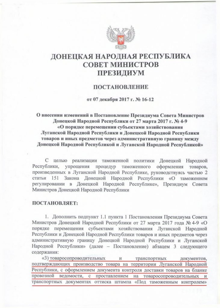 Так, 27 грудня набула чинності постанова "ради міністрів "ДНР", якою бойовики Захарченка заборонили ввезення підакцизних товарів з території, підконтрольній бойовикам Пасічника/Корнета.