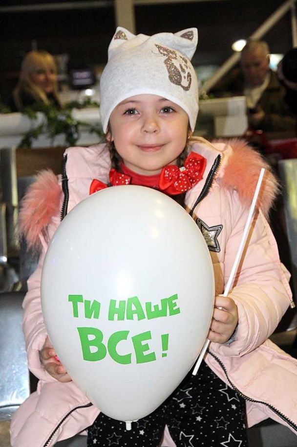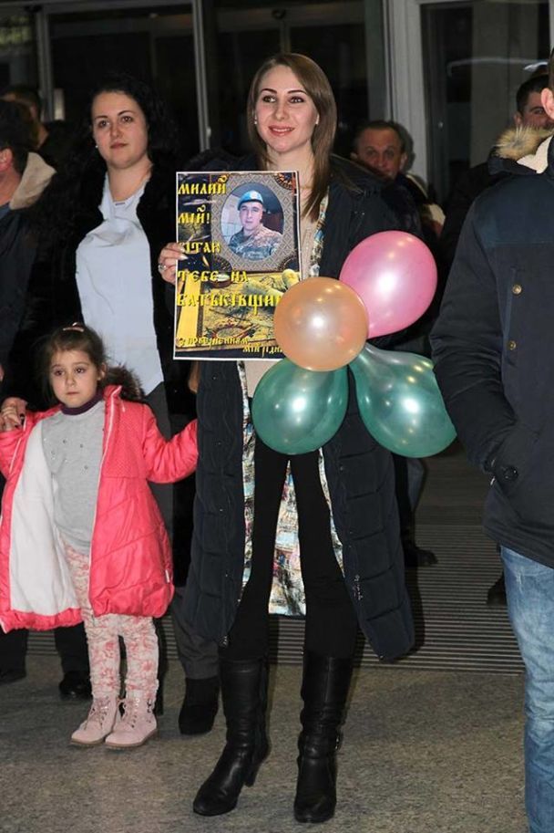 Українців зустрічали в аеропорті "Львів" рідні та близькі. Їм вручили символічний коровай та нагородили пам’ятними нагрудними знаками "Воїн-миротворець".