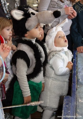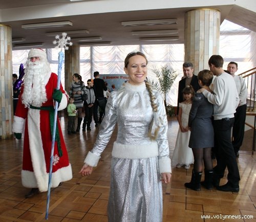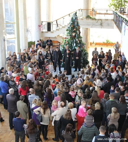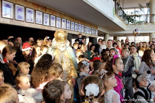 Традиційно вітали діток Святий Миколай, Дід Мороз та Снігуронька, інші казкові персонажі. Не обійшлося і без новорічних хороводів та різдвяних піснеспівів. А завершилося свято виставою за участю акторів волинського облмуздрамтеатру.