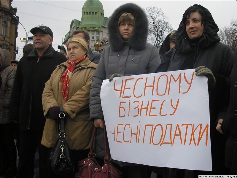 «Нас сьогодні в Україні за анонімкою можна фактично знищити людині бізнес. Так відбувається в Луганську. Суд ухвалює рішення, що проведення перевірок на фірмі були неправомірні, а прокуратура опротестовує таке рішення. Величезна кількість підприємців з 1 квітня залишаться без нормальних умов працювати», – каже один із організаторів протесту.