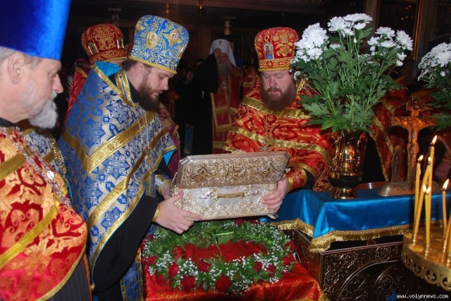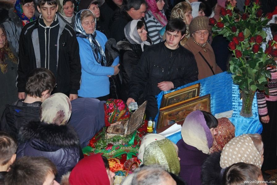 Ковчег з мощами великомученика Дмитрія Солунського в рамках всеукраїнського хресного ходу привезли у Свято-Покровську церкву 3 грудня. Незважаючи на дощову погоду, на подвір’ї храму святиню чекали кілька сотень вірян. Про це повідомила Людмила Приймачук у прес-службі Волинської єпархії УПЦ.