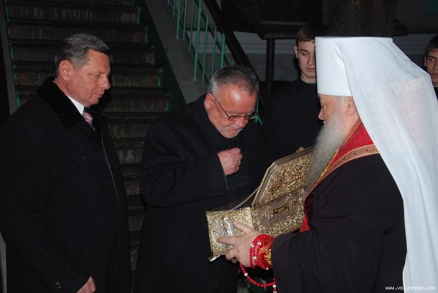 Керуючий єпархією митрополит Луцький і Волинський Ніфонт сказав: «Сьогодні у нас в Луцьку непересічна подія. – З Греції Господь сподобив прислати до нас мощі святого великомученика Дмитрія Солунського. Він постраждав за віру у перші віки християнства».