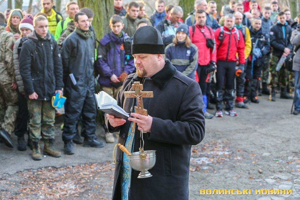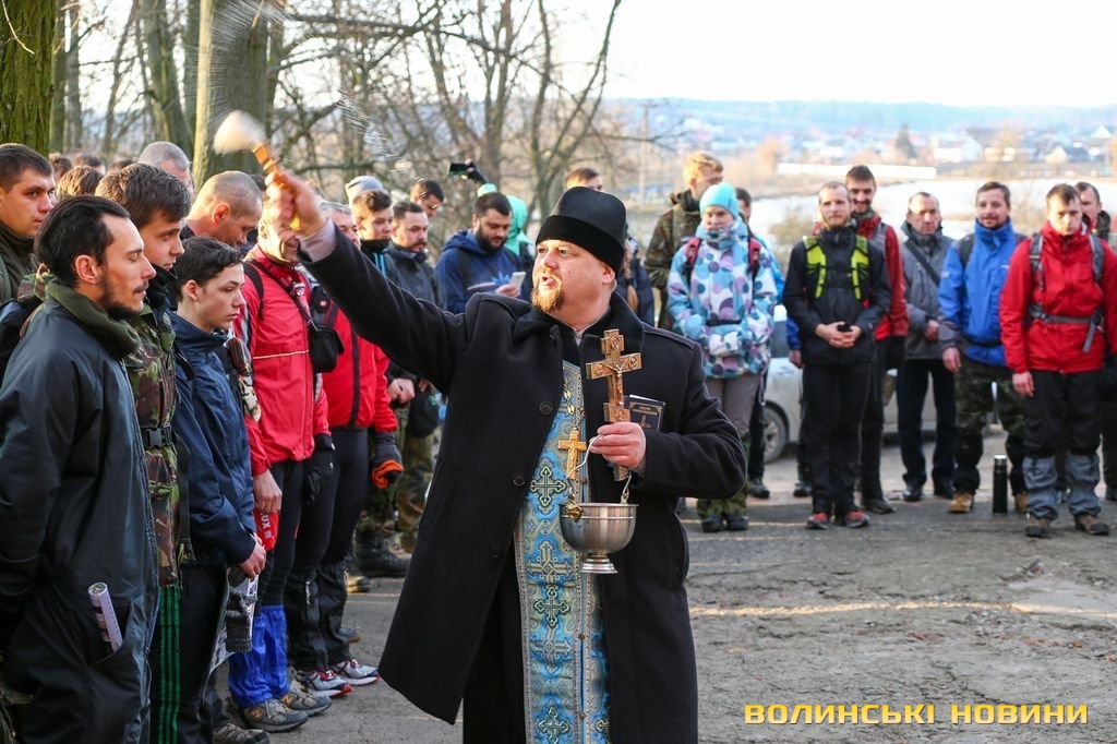 Традиційно змагання починають з молитви та благословення від священика. А селищний голова Анатолій Дорошук, учасник АТО,побажав «добровольцям» побільше сил. Виконавши гімн, команди стартують.