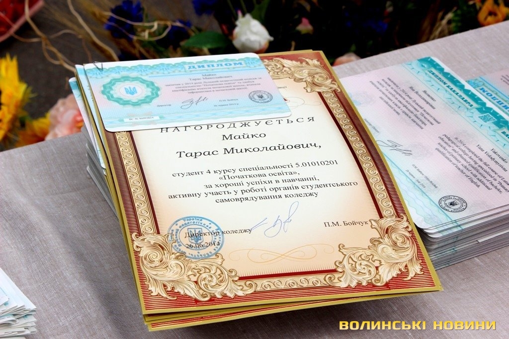 Вручила випускникам дипломи з відзнакою начальник управління освіти і науки Волинської облдержадміністрації Валентина Загрева.«Наші діти, друзі, колеги, шануйте школу, в якій працюватимете й пам’ятайте, що ви виховуєте підростаюче покоління. Тому будьте патріотами й любіть свій рідний край», - звернулася до випускників Валентина Загрева.