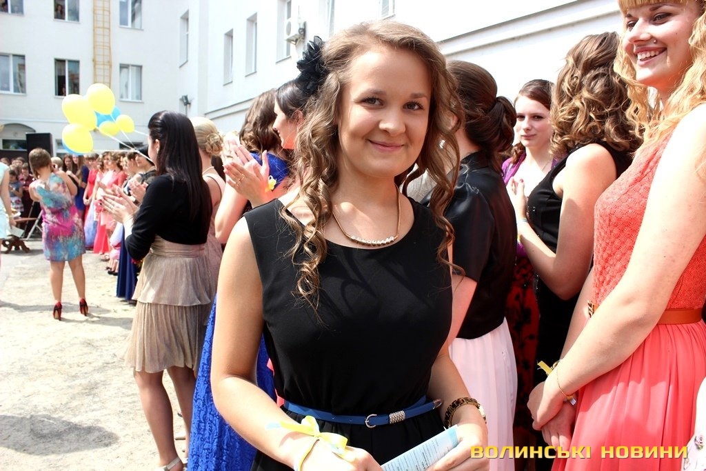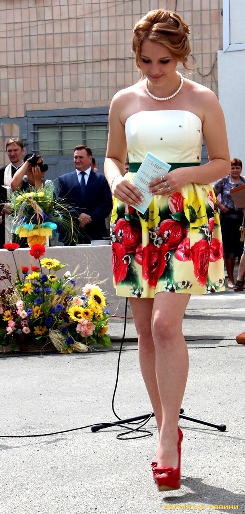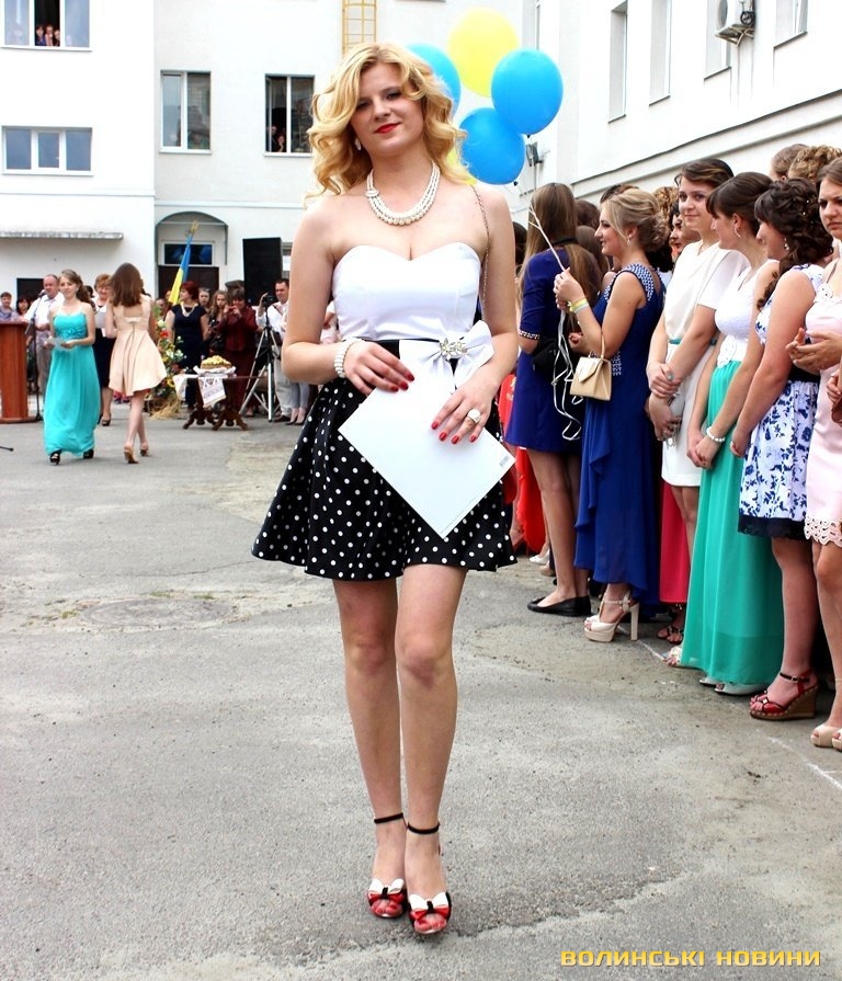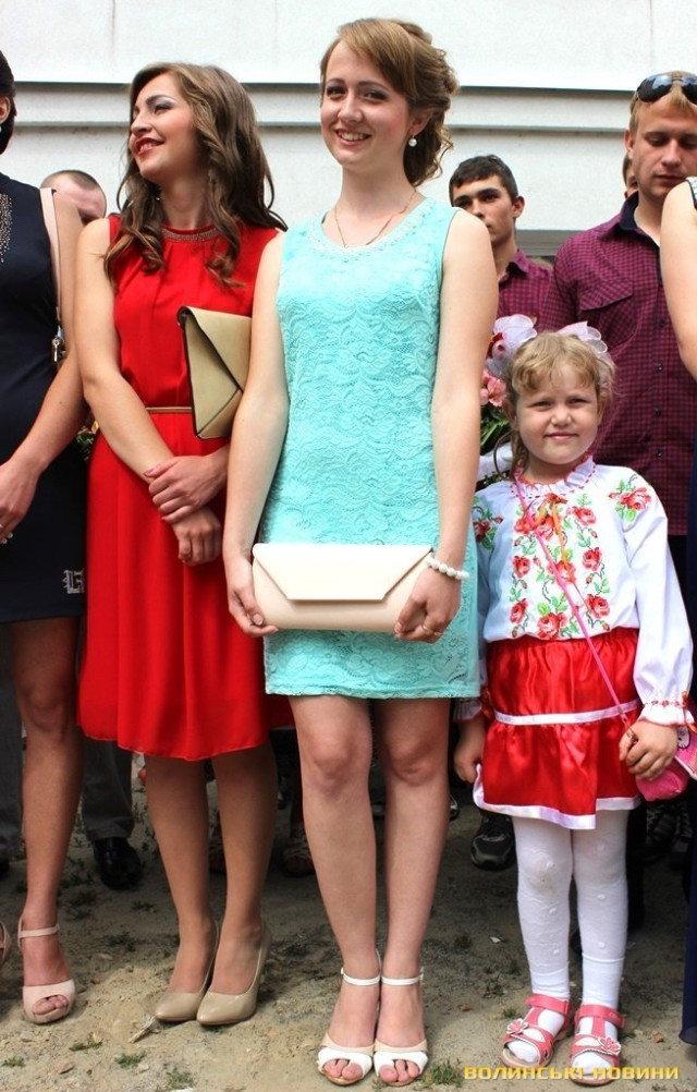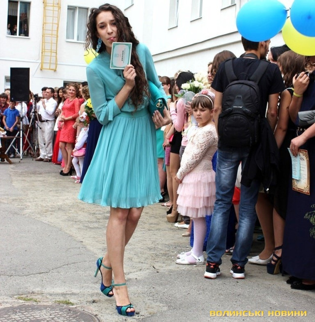 Довгонога вчителька-випускниця Алевтина Панафідіна запевняє, що сьогодні, 26-го червня, - справді особливе свято, вона впевнена, що не помилилася з вибором майбутнього фаху.«Сьогодні я отримала диплом молодшого спеціаліста кваліфікації "початкова освіта, педагог-організатор". Під час навчального процесу в нас було багато практики, і я маю досвід роботи з дітьми. В різних школах Луцька для малюків я проводила уроки, виховні години, це надзвичайно! Коли ти стараєшся, готуєш різні плакати, вирізаєш з паперу наочну інформацію, проводиш урок, а потім до тебе підбігають первачки, обнімають і дякують - це відчуття зрозуміє лише вчитель», - ділиться святковими емоціями Алевтина Панафідіна.