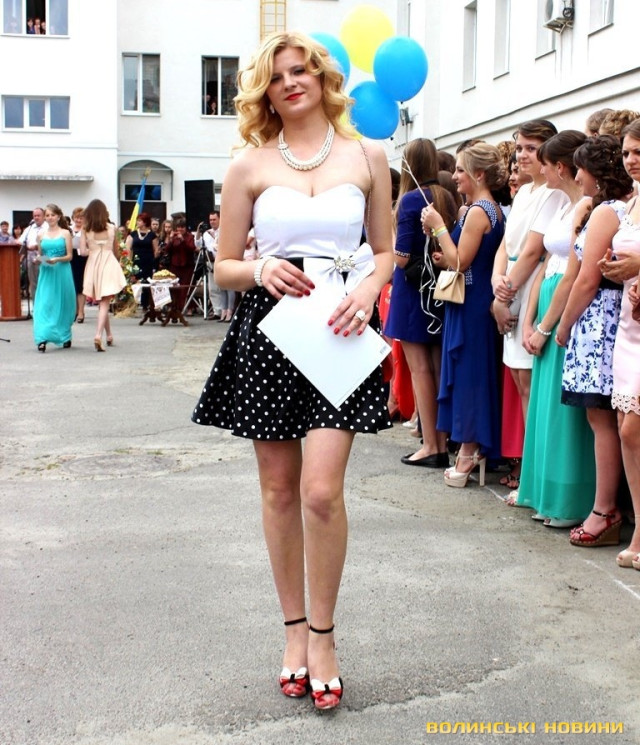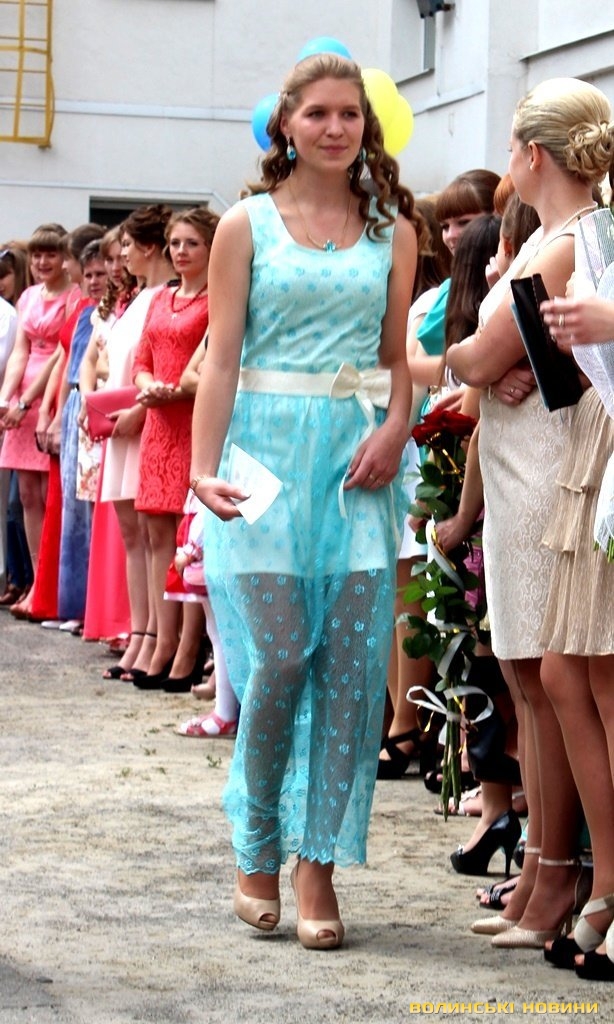 Довгоногі вчительки-випускниці розповідали, що свої плаття, в більшості, купували в "струйових" бутіках Луцька, вартість - від 400 гривень. Були й такі, яким шили вбрання на замовлення за 7 тисяч гривень. Майбутнє волинської педагогіки віддало перевагу у кольорі відтінкам червоного.