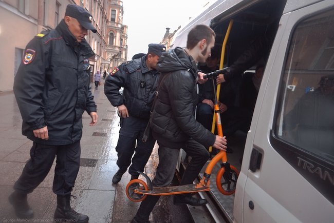 Поліцейські затримали молодих людей і доставили в 78-й відділок поліції. Там на них склали протоколи за «порушення правил публічних заходів, яке спричинило перешкоди рухові транспорту і пішоходів».